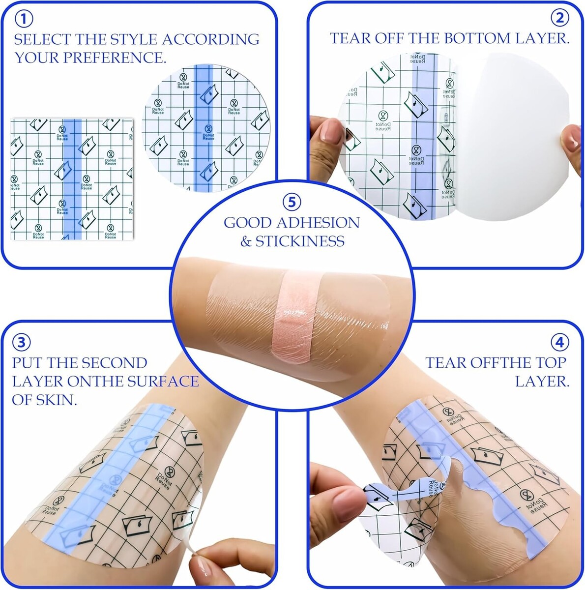 Each transparent adhesive bandage offers shielded protection against dust, dirt, germs, and bacteria while expertly covering and safeguarding scrapes, blisters, abrasions, and healing tattoos. Ideal for bathing, swimming, surfing, or any beach activity, you can immerse yourself in life without reservations.