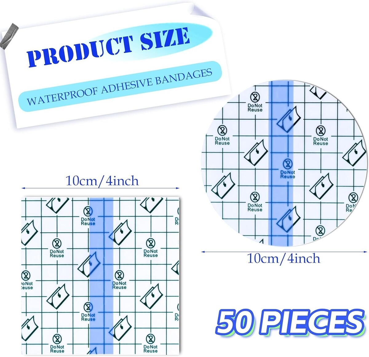 Waterproof Adhesive Bandages - Transparent Tattoo Cover Up Film - 4" x 4" - 50 Pieces (Round Square), Non-Sterile