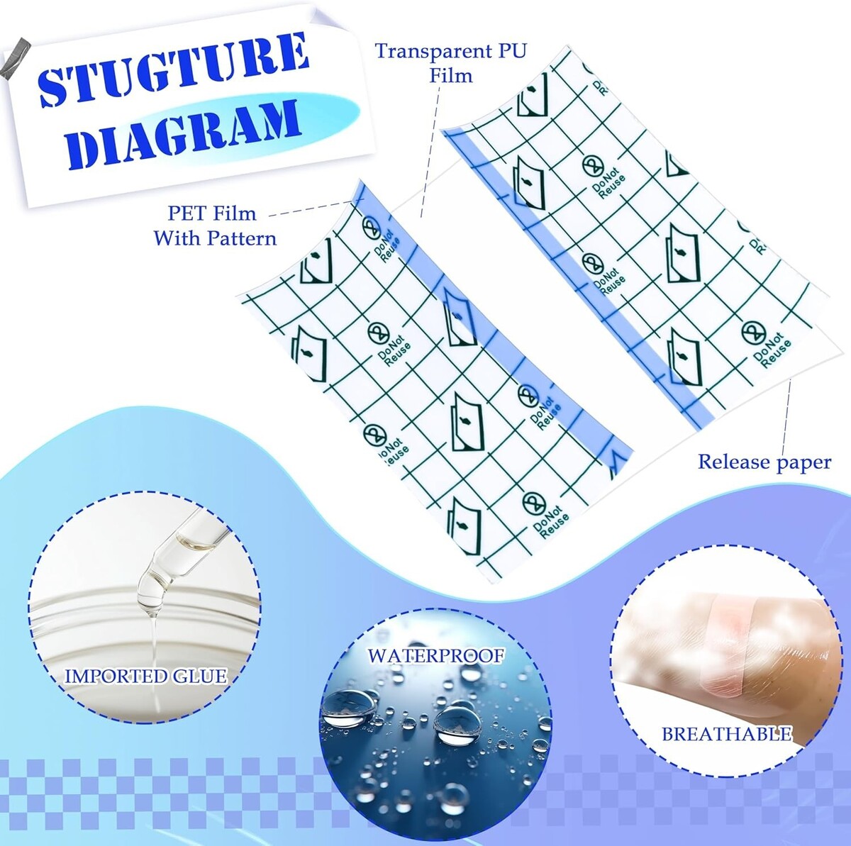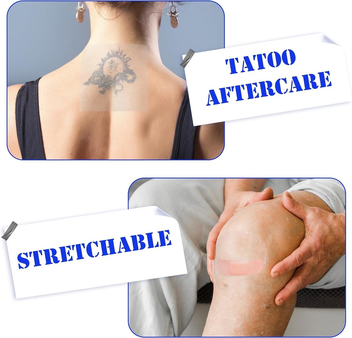 Our tattoo aftercare bandage features a sophisticated construction of PET backing, PU film, and medical pressure-sensitive glue, designed to provide optimal waterproofing and protection against moisture. Enjoy the freedom to shower or swim without worry, all while safeguarding your skin from external irritants and maintaining an elegant appearance.