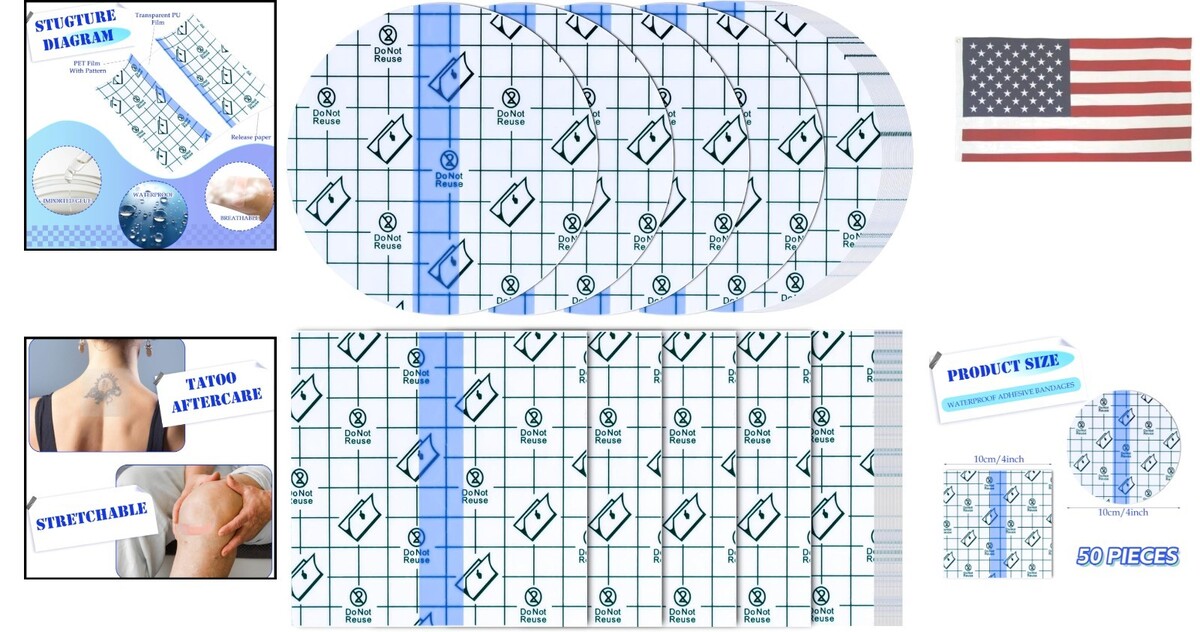 You will receive a total of 50 pieces of high-quality transparent adhesive waterproof bandages, comprised of 25 round and 25 square bandages. Perfect for any occasion, these versatile bandages are designed to meet your unique daily needs while ensuring a stylish and discreet cover for your tattoos.
