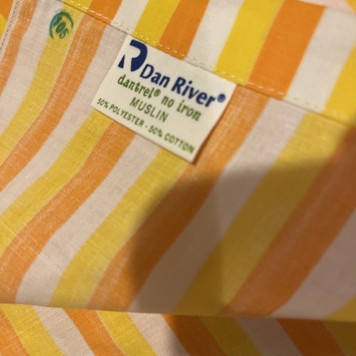 Vintage DAN RIVER Yellow & Gold Striped Fine Muslin MCM Twin Flat Sheet