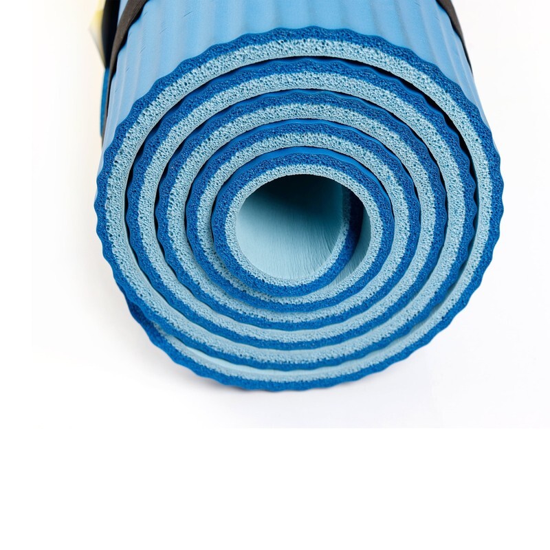 Two Tone Fitness Mat, 10Mm, 72Inx24In, Blue Color, NBR Foam, with Carry Strap