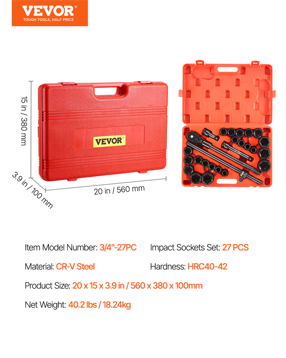 VEVOR 3/4 in Drive Impact Socket Set, 27 pcs and 39 similar items