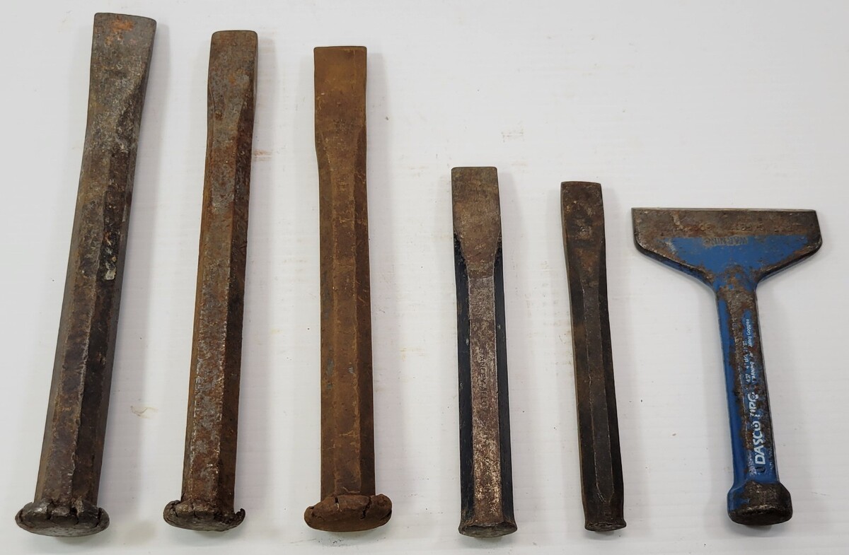 *K5) Vintage Mixed Lot 6 Machinist Metal Chisels Punches Tools Dasco Stanley
