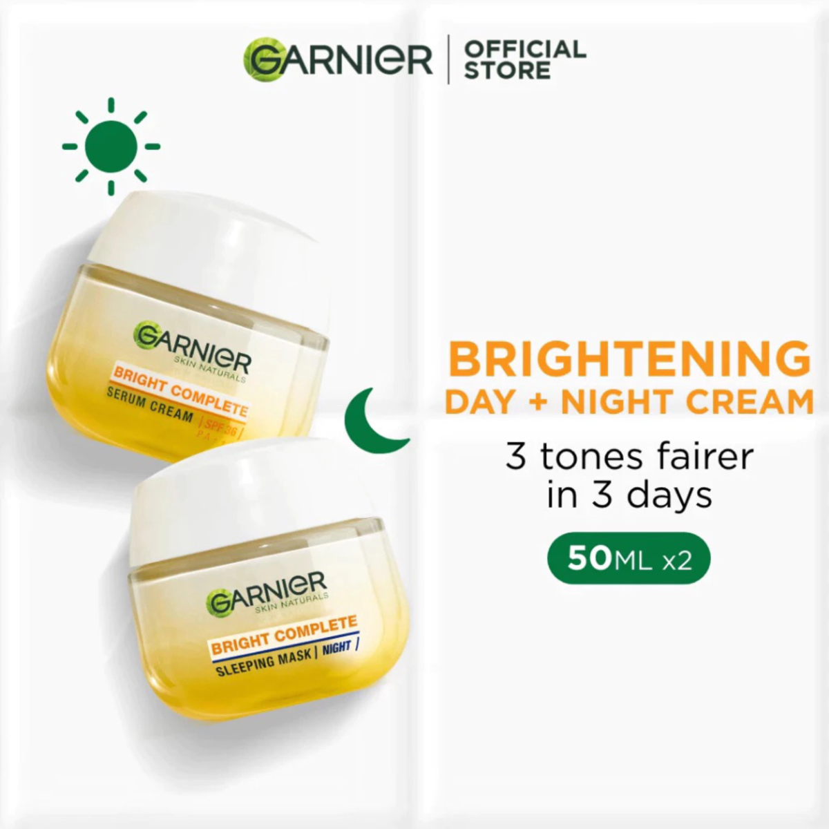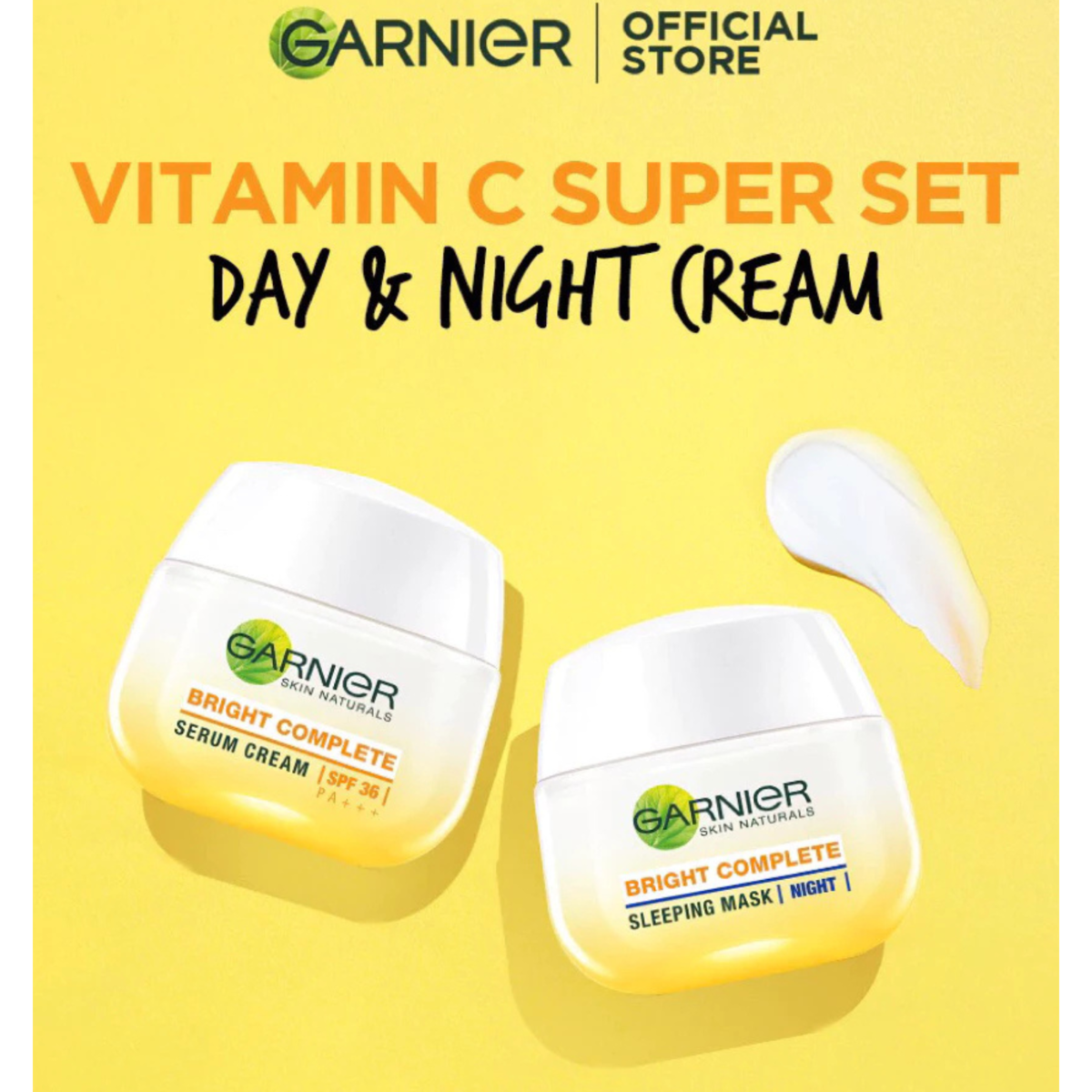Set Garnier Bright Skin Complete Serum SPF30 PA+++ Day Night Sleeping Mask 50ML
