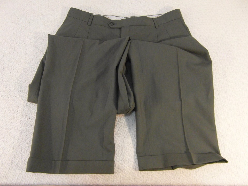 Adult Men's Louis Raphael LR 100% Virgin Wool Dress Slacks Gray Green 33278
