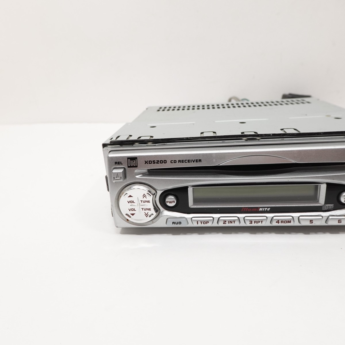 Dual XD5200 Car Stereo CD Receiver. Classic early-2000s head unit with rare full red illuminated faceplate.