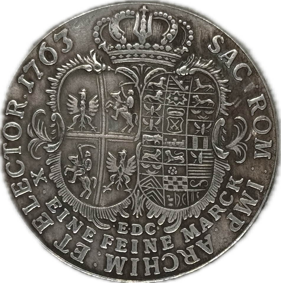 Questa riproduzione storica del tallero sassone del 1763 commemora l'epoca di Federico Augusto III, Elettore di Sassonia e Re di Polonia. La moneta testimonia l'importanza dell'Elettorato di Sassonia all'interno del Sacro Romano Impero e la sua connessione con l'Unione Polacco-Lituana. Il dritto presenta un dettagliato ritratto di Augusto III, ornato con un'armatura riccamente decorata e una parrucca, accompagnato da un'iscrizione del suo titolo completo. Questo sovrano presiedette un periodo tumultuoso durante la guerra dei sette anni (1756-1763), un periodo in cui la Sassonia affronto l'occupazione prussiana, indebolendo infine la sua influenza. Il rovescio mostra un grande stemma della dinastia Wettin, diviso in quattro quadranti che rappresentano Polonia, Lituania, Sassonia e altre proprieta di famiglia. Questo emblema simboleggiava le rivendicazioni dinastiche degli elettori sassoni al trono polacco. L'anno 1763 segna non solo la fine della guerra dei sette anni, ma anche la morte di Augusto III, che porto alla destabilizzazione dell'Unione polacco-lituana. Questa replica meticolosamente realizzata conserva fedelmente i dettagli dell'originale, rendendolo un'aggiunta ideale per i collezionisti di numismatica europea.