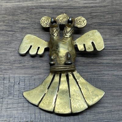 Vintage Necklace Primitive Trial Bird Two Headed Pendant Charm Estate Find KG