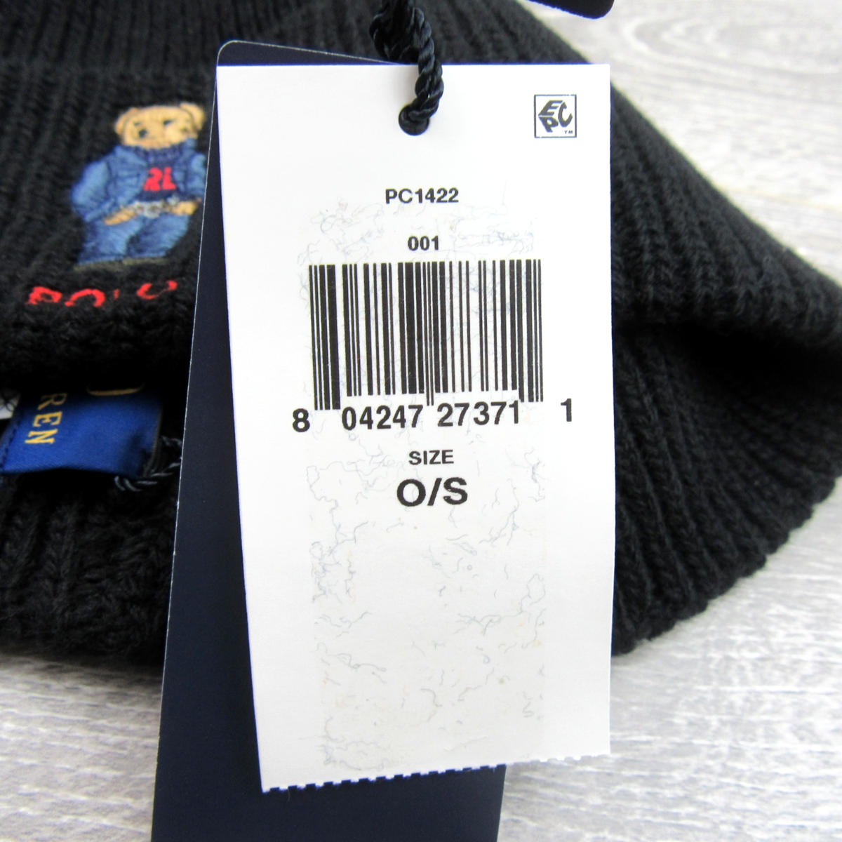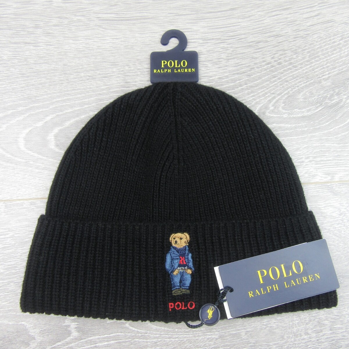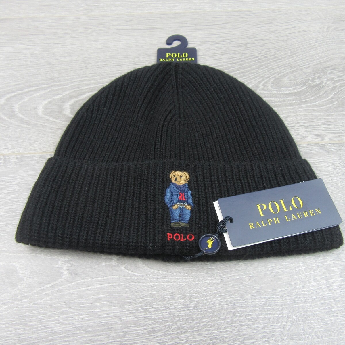 Polo Ralph Lauren RL Embroidered Denim Bear Beanie Cap One Size Black NEW