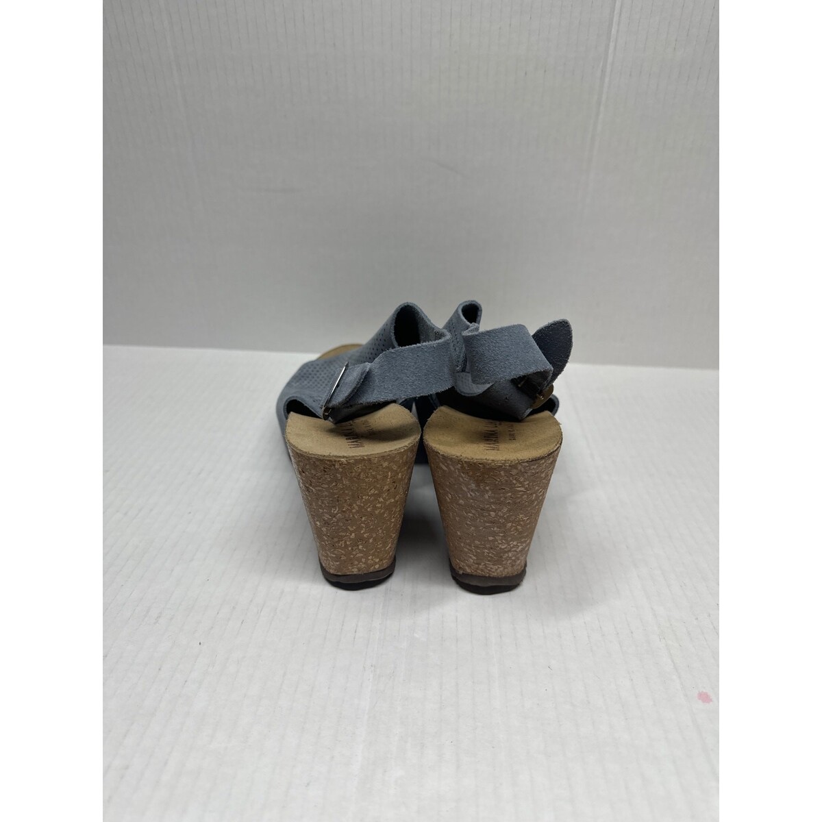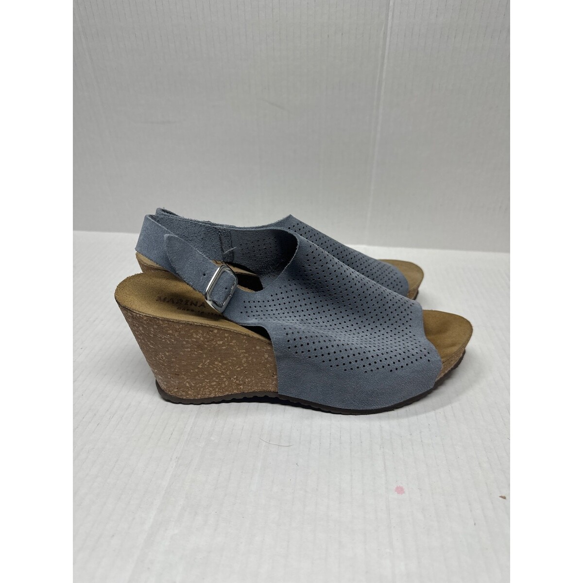 Marina Luna Women Shoes Sandals Blue Gray Leather Wedge Made in Italy Size 9.5