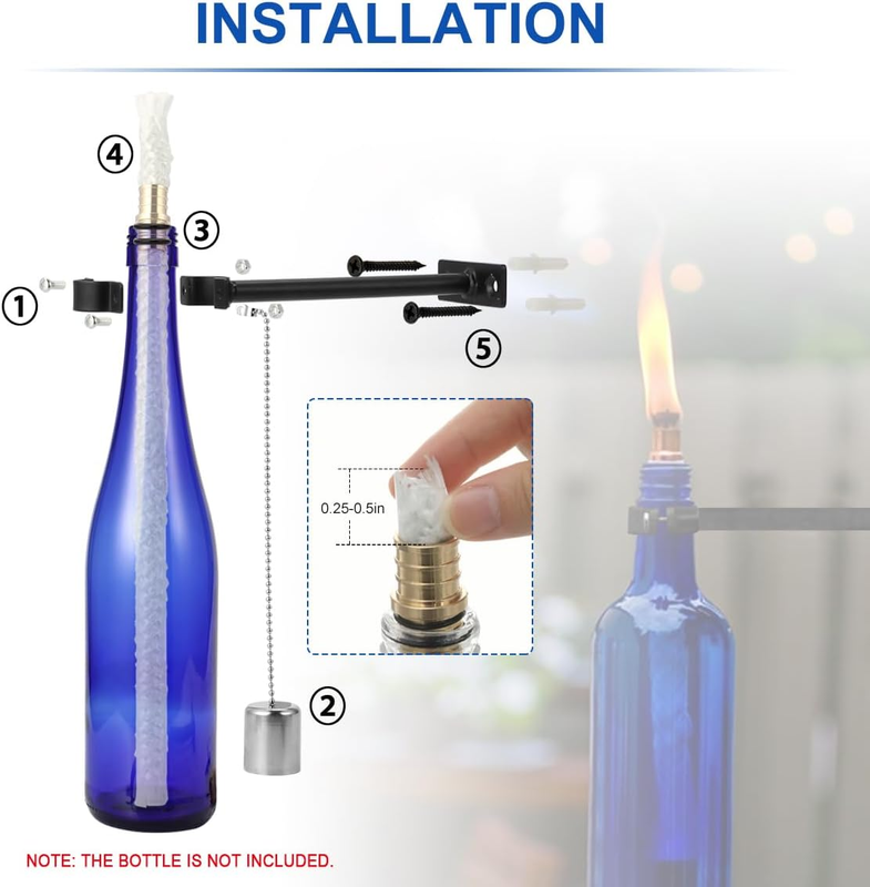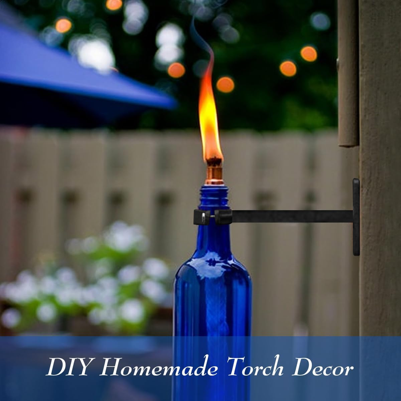 Wine Bottle Torch Kit, Outdoor Patio Wall Mount Holder with Wick, Porch Whiskey Bottle Hardware Kit, DIY Homemade Decor