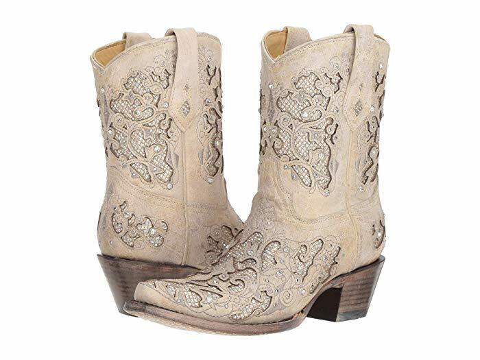 Ladies Corral A3550~White (Bone) Inlay & Crystals Ankle Boot~Western~Wedding