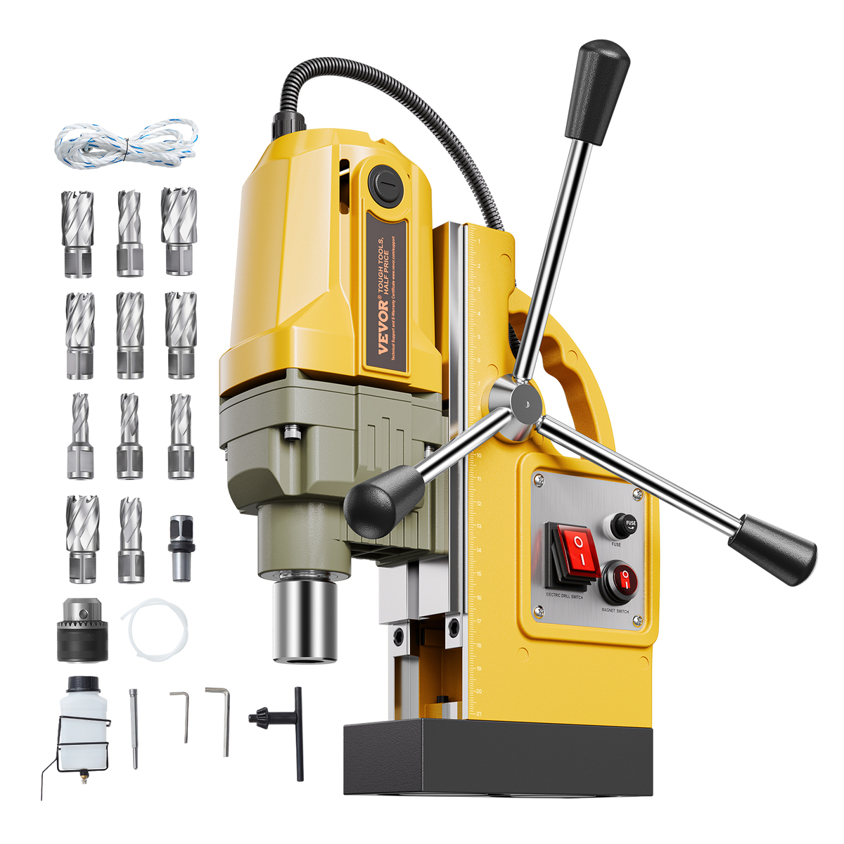 VEVOR Electric Mag Drill Press, 1400W, 1.6" Diameter, 2810 lbf, 11 Coring Bits