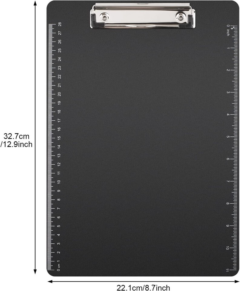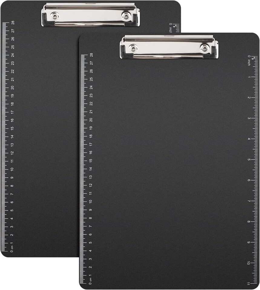 Package includes 2 pack quality black plastic clipboard with Ruler