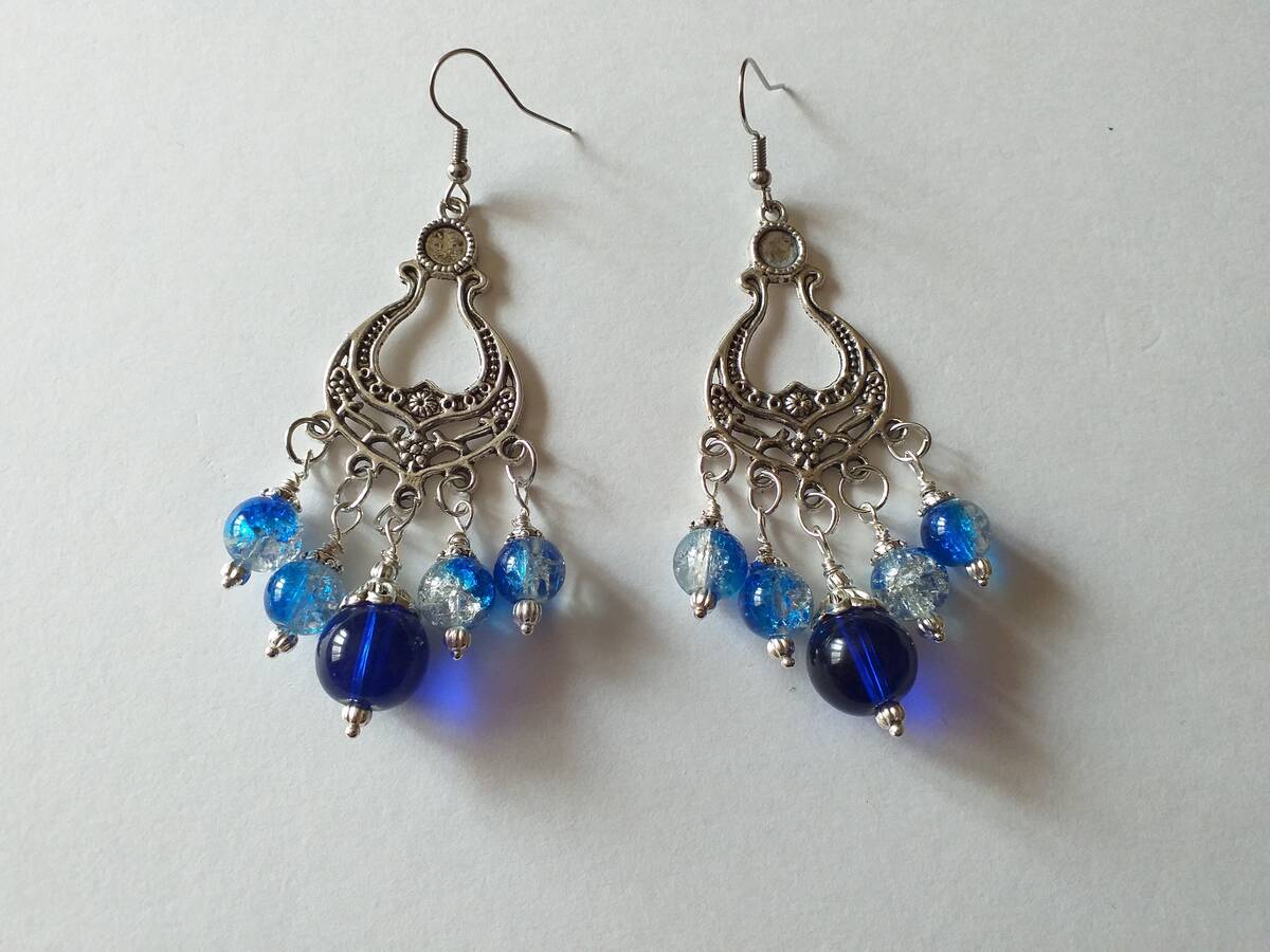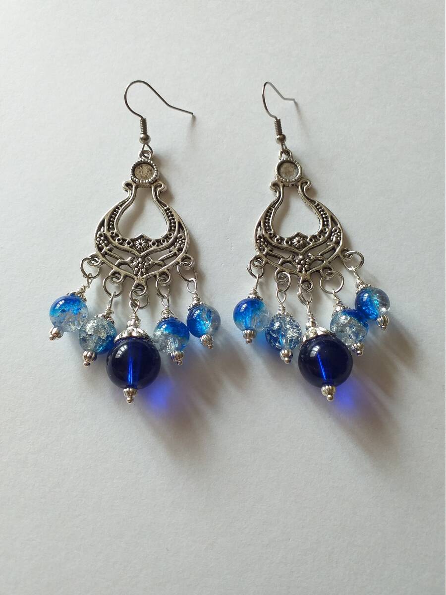 Materials: Blue crackle glass beads , silver tone ornament beads ,steel