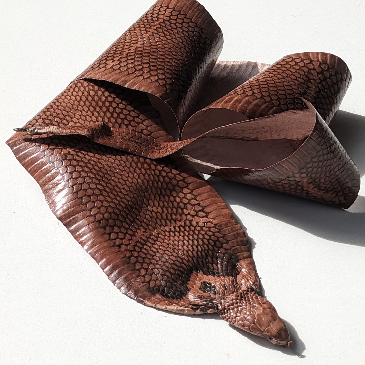 Tanned Head-on Genuine Cobra Snake Skin Snakeskin Leather Brown Single One
