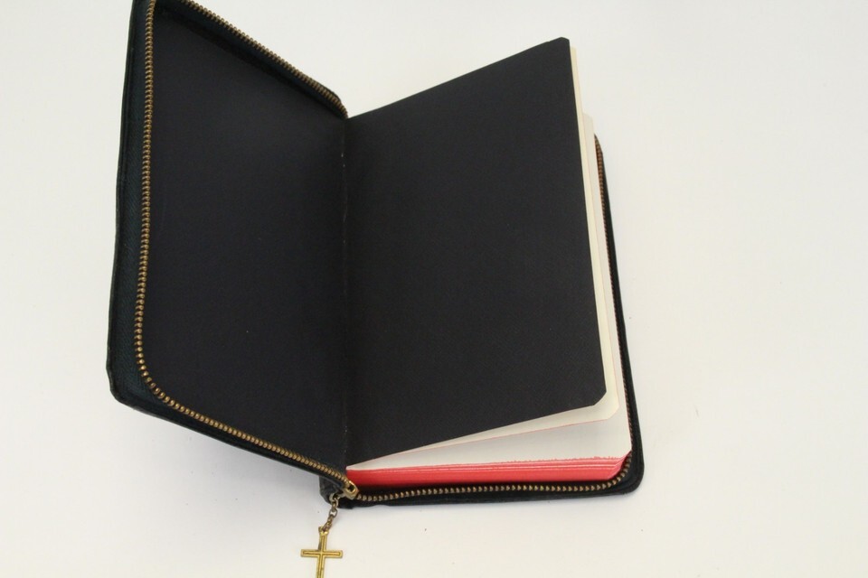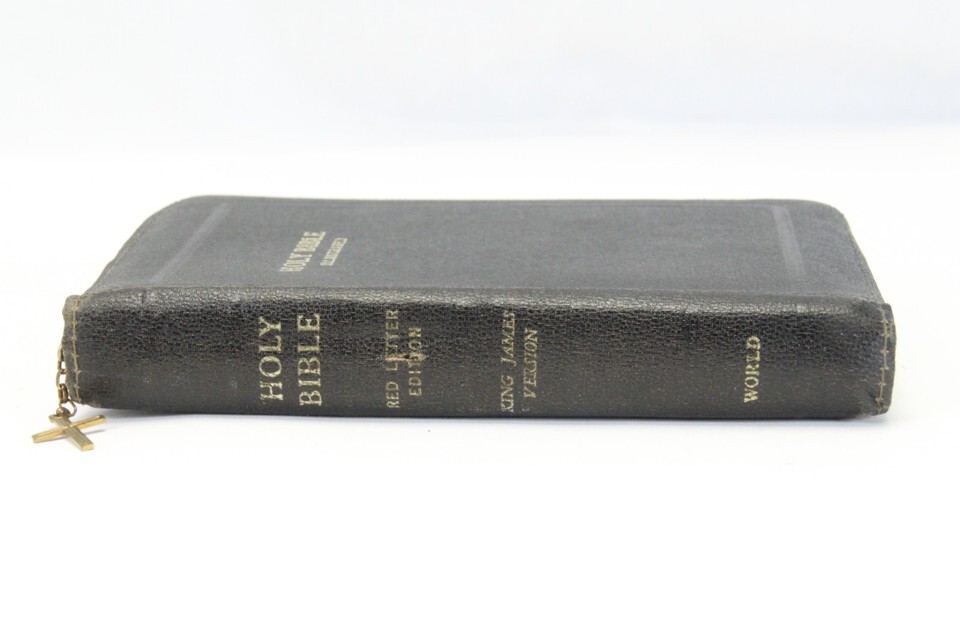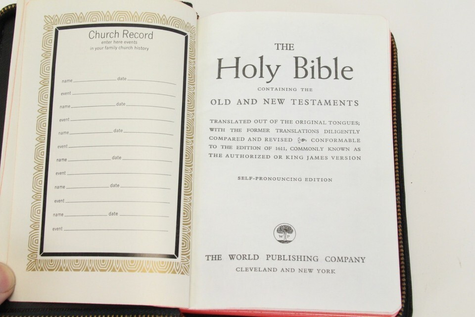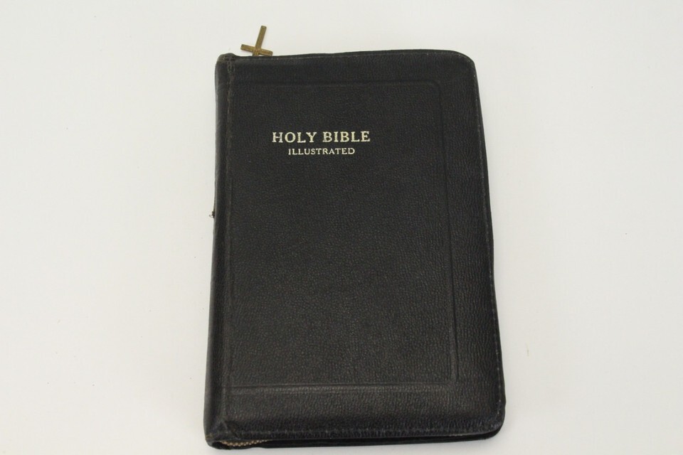 Vtg Holy Bible Illustrated KJV Self Pronouncing Cross Zipper Blk Cover World Pub