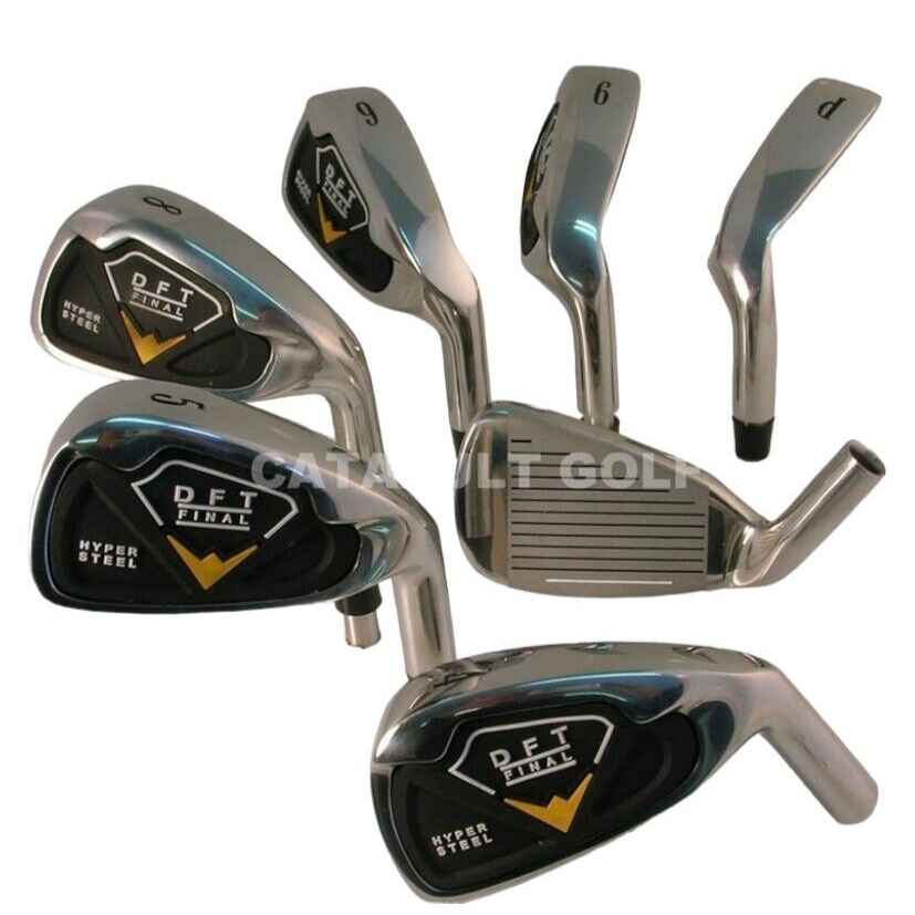 You will receive a fully assembled complete iron set: 3, 4, 5, 6, 7, 8, 9, + Free Matching nbsp; PW Fully Assembled with Precision GRAPHITE Shafts Tour Velvet grips. nbsp; The DFT irons have a large hitting area and heel toe weighting which helps with forgiveness on off center shots.The DFT utilizes three types of material in their construction which helps maxmize distance while maintaining accuracy. This club is a great overall club for the mid- high handicap golfer who is looking for better iron play. nbsp; nbsp; Compare features and performance with Callaway Fusion Irons.