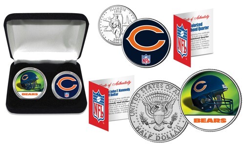 CHICAGO BEARS NFL Helmet JFK Half Dollar U.S. Coin w/ NFL Display Case LICENSED