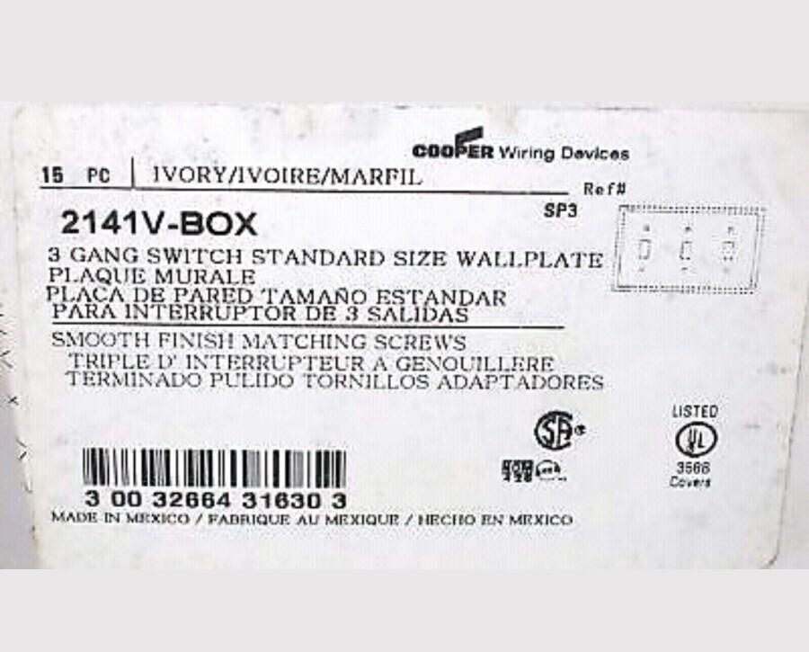 SWITCH PLATE COVER IVORY QTY-4 3 GANG STANDARD SIZE COOPER 4 pcs