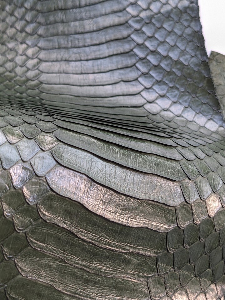 Cobra Snake Skin Piece Snakeskin Leather Hide Craft Supply Back-cut Dark Green