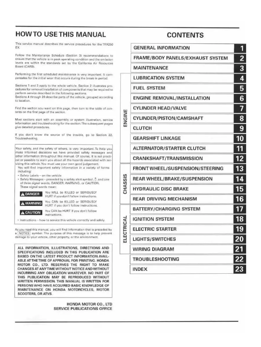2001-2011 Honda TRX 250EX Service Repair Manual