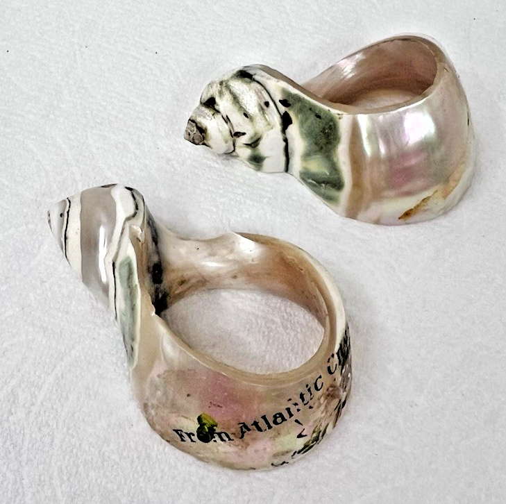 2 Antique Souvenir Real Seashell Napkin Rings From Atlantic City Wear