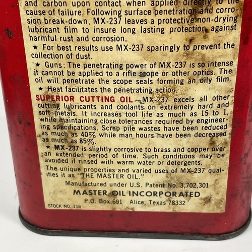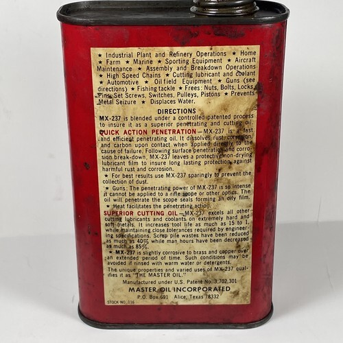 Vintage Oil Tin MX 237 The Master Oil Alice Texas.