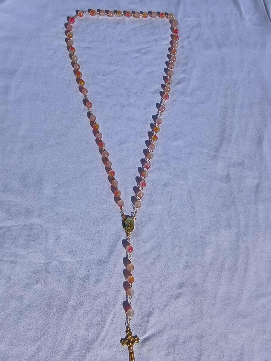 Blush Sunset Rose 8mm Glass Rosary – Gold and similar items