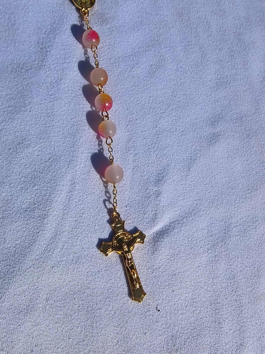 Blush Sunset Rose 8mm Glass Rosary – Gold Tone – Devotional Prayer Beads A9