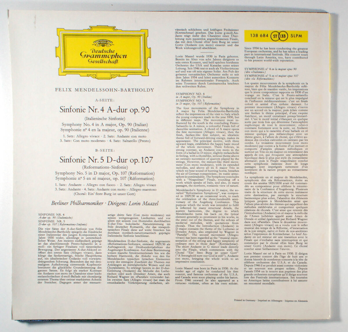 Lorin Maazel - Italienische, Reformations Sinfonie (1967) Vinyl LP