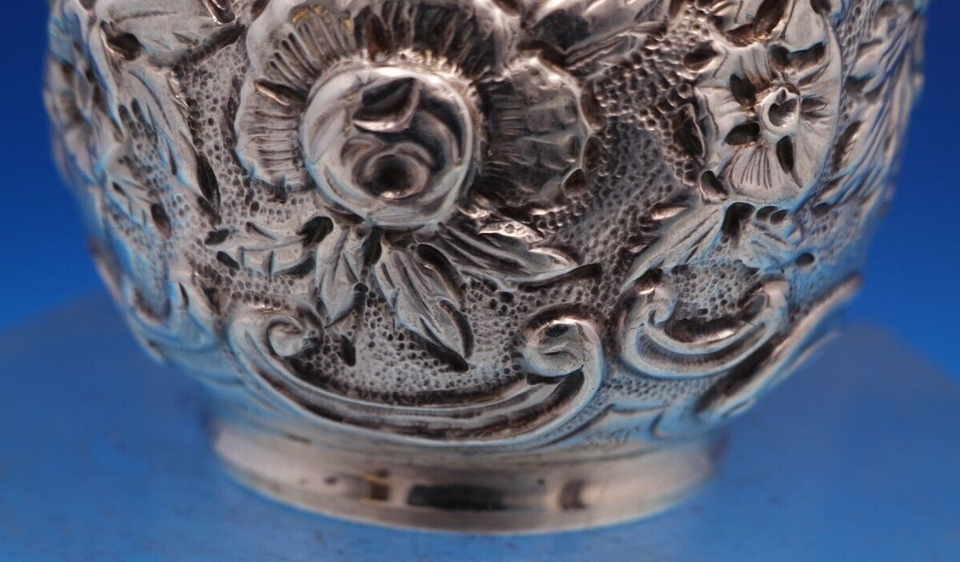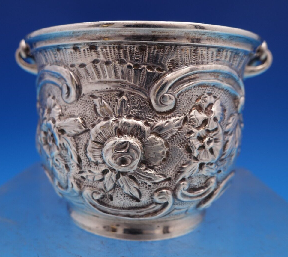 Lovely Repousse by James R. Armiger sterling silver nut bowl with swinging arm. This piece measures 2 3/8" tall x 3" and weighs 3.42 troy ounces. It is not monogrammed and is in good estate condition as shown. Fabulous!
