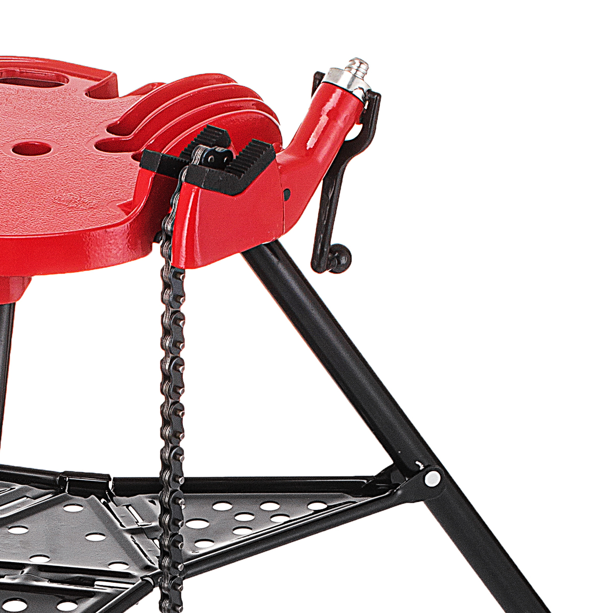 Compact Portable: This chain vise stand's flat-folding design enables briefcase-style transportation and compact storage in job boxes. Perfect for taking down to the basement or wherever you are working.