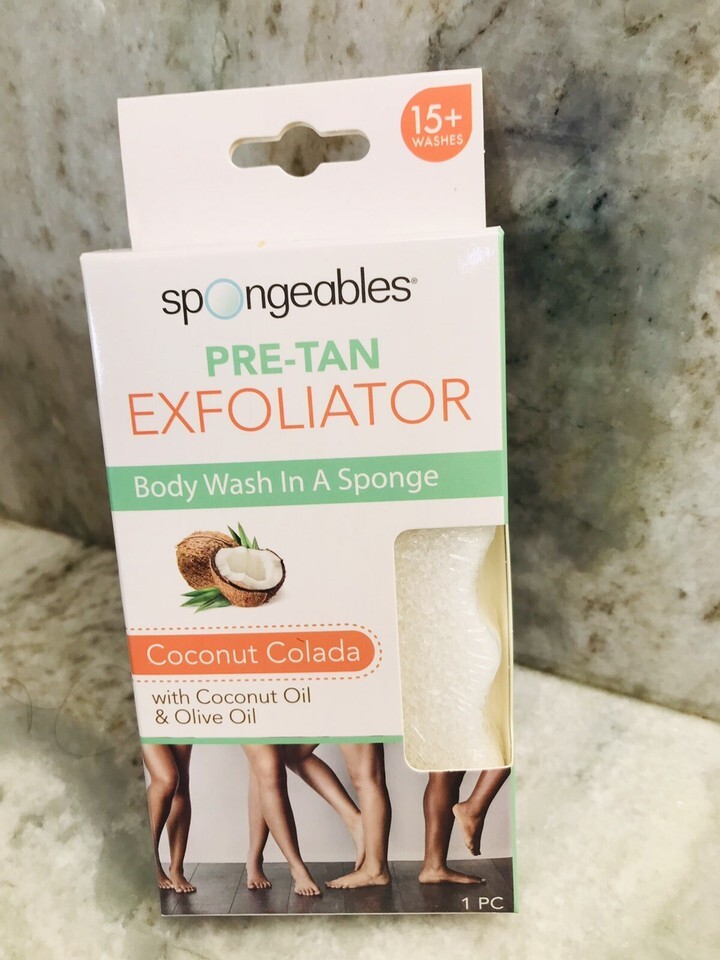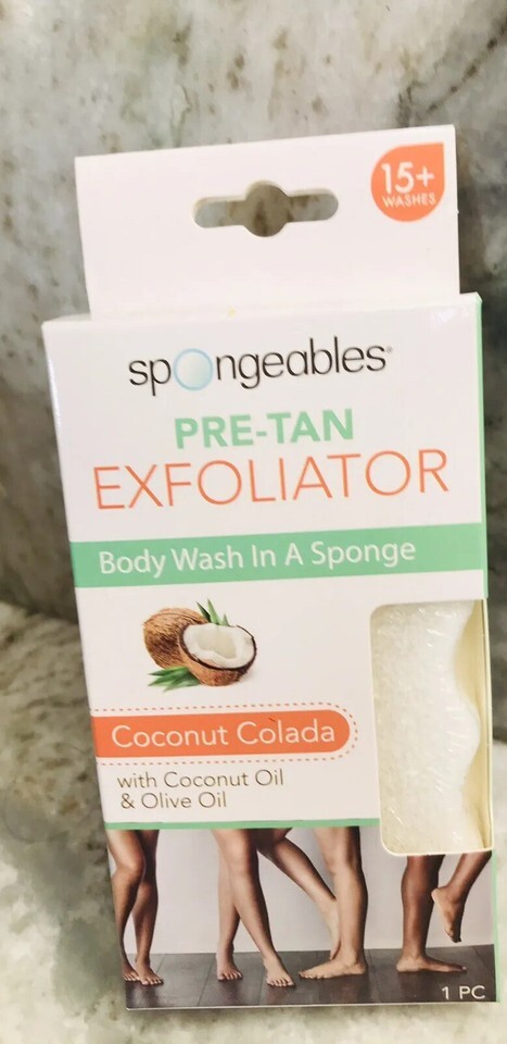 Spongeables Pre-Tan Coconut Colada Body Wash In A Sponge W/Coconut Oil/Olive Oil.