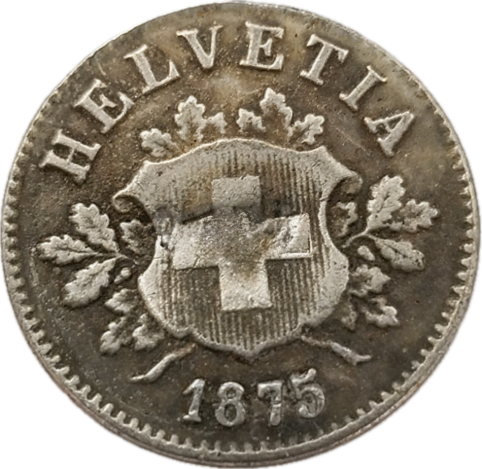 Diese 10 Rappen Münze von 1875 tragt das ikonische sitzende Helvetia Schild und Eichenblattmotiv, emblematisch für die aufkommende Starke und Einheit des neu foderalisierten Schweizer Staates. Die Vorderseite zeigt das Schweizerkreuz auf einem barocken Wappenschild, umgeben von detaillierten Eichenblattern, die Kraft und Ausdauer symbolisieren. Die Rückseite zeigt die Ziffer "10", umgeben von einem klassischen Lorbeerkranz und mit einem Band gebunden, einem traditionellen europaischen Symbol für bürgerliche Tugend und Ehre. Das Datum "1875" markiert die frühen Jahre der standardisierten Bundespragung, die eingeführt wurde, nachdem die Schweizer Bundesverfassung von 1848 begann, die politische und monetare Struktur des Landes neu zu gestalten. Dieses Stück ist eine moderne Nachpragung des ursprünglichen Designs, das wahrend der Schweizer Wahrungskonsolidierung herausgegeben wurde, einer Zeit, als der Bund verschiedene kantonale Wahrungen zu einem koharenten frankenbasierten System vereinte. Der Helvetia-Typ war weit verbreitet und geschatzt für seine neoklassizistische allegorische Darstellung der Nation. Ob für Sammler mit Schwerpunkt Schweizer Münzpragung oder Liebhaber europaischer numismatischer Kunst des 19. Jahrhunderts, dieses Exemplar ist eine treue und asthetische Hommage an die Nation-Building- ra der Schweiz.