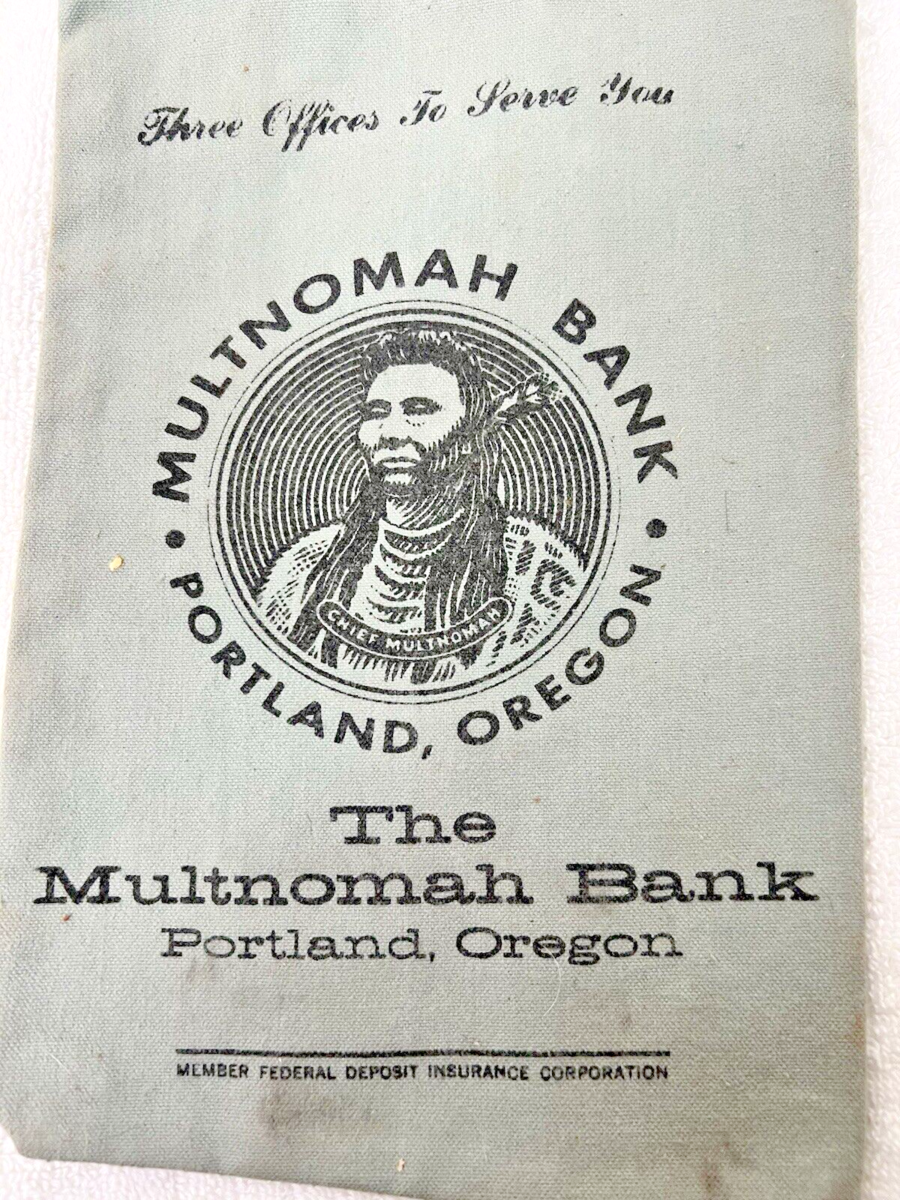 1948-1970 Multnomah Bank Bag w Native American Logo Very Good Shape Portland Or