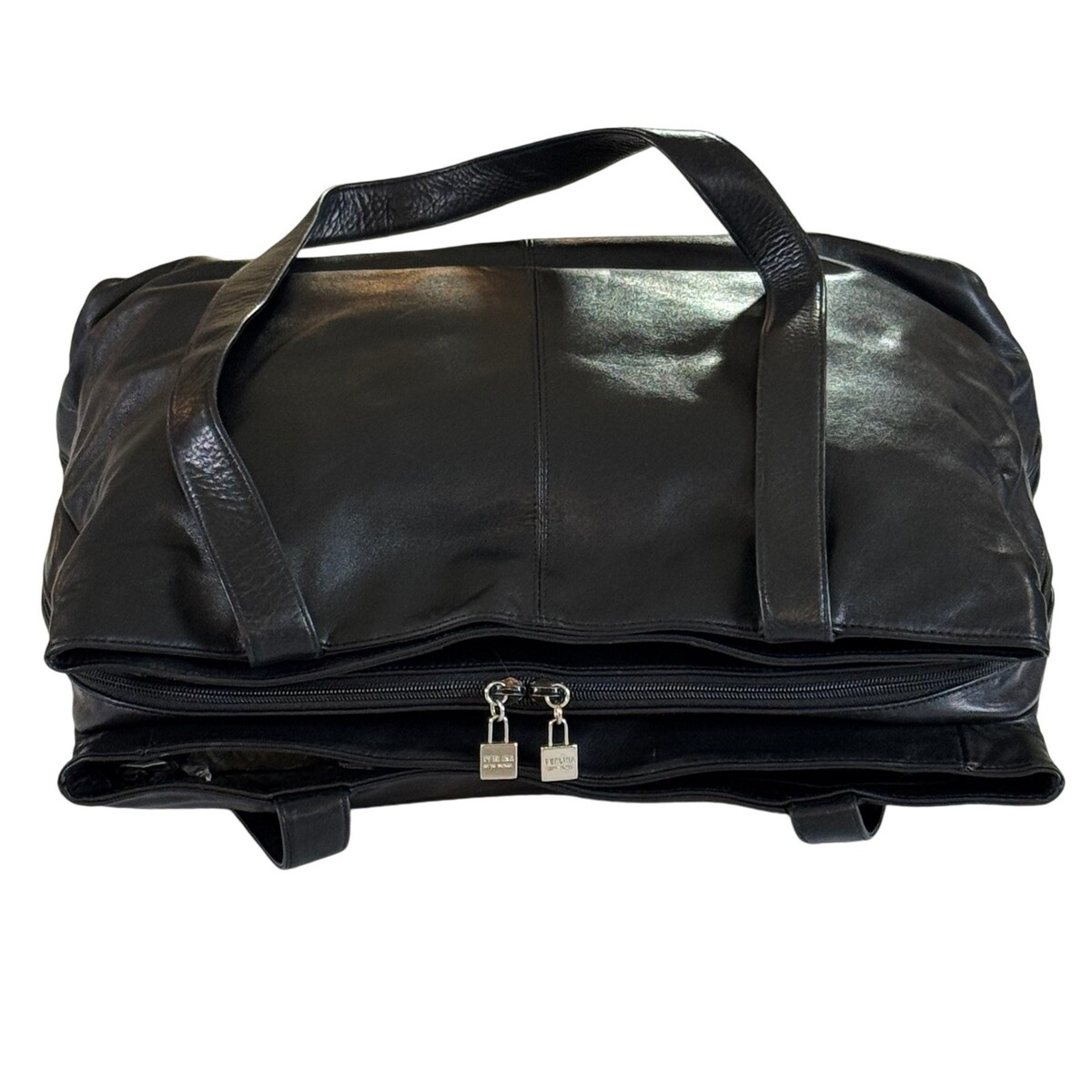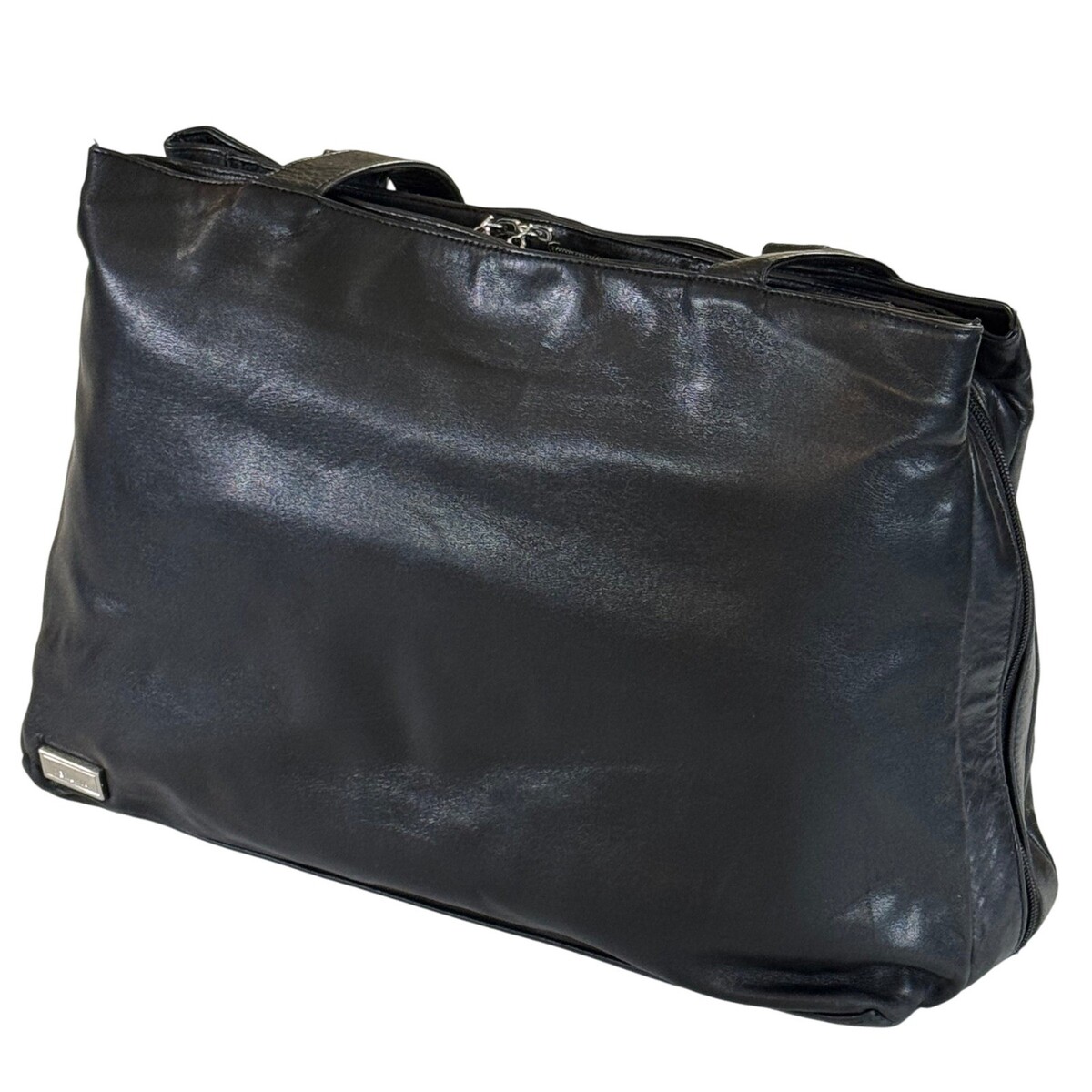 Perlina New York Black Leather Shoulder Tote Bag Vintage 90s Korea Made Large