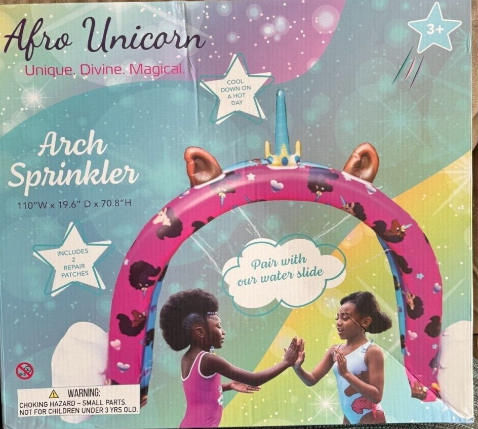 Selling one Afro Unicorn Split Ring inflatable pool toy, for kids. This item is new, and unopened.