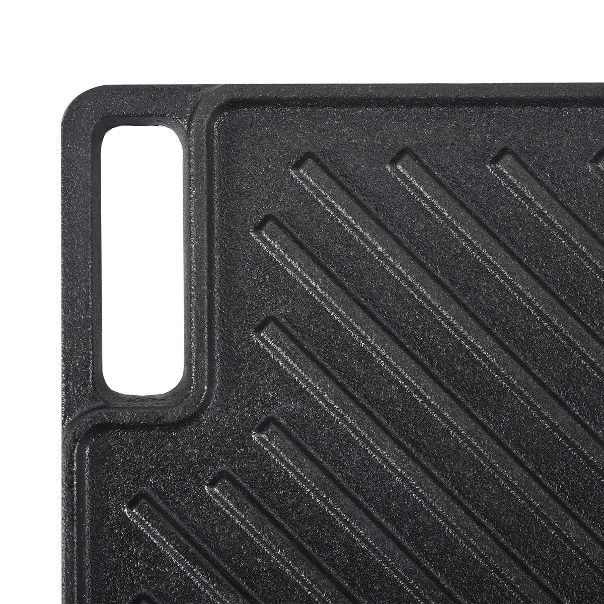 Thickened Cast Iron Grill Pan: This flat top grill is formed in one piece with a thickness of 3.3 mm, ensuring even heat distribution and fully releasing the flavor and nutrition of the food.