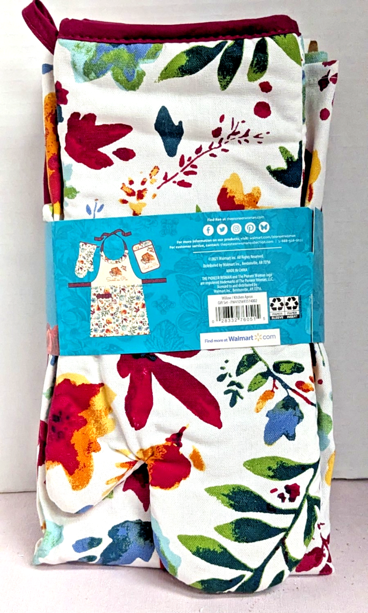 Pioneer Woman Sweet as Pie Willow Kitchen Apron Gift Set Oven Mitt Potholder NEW