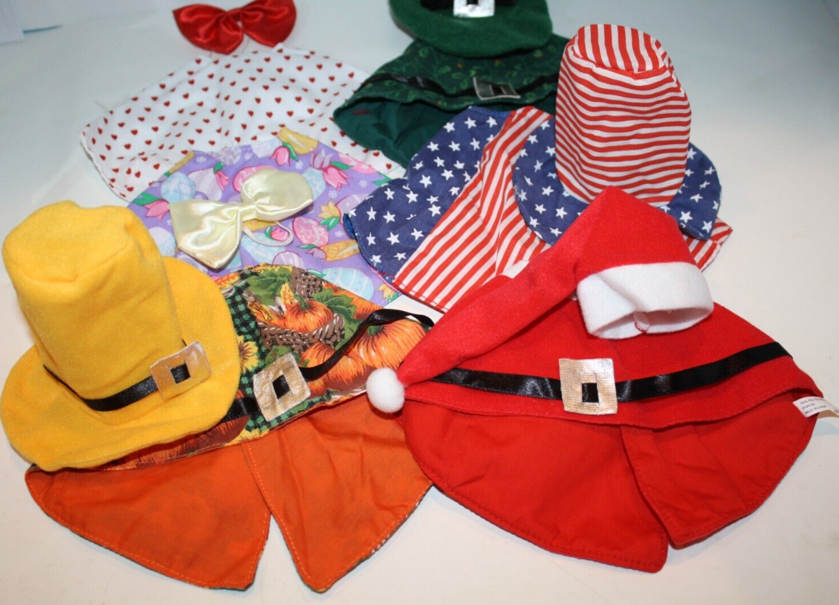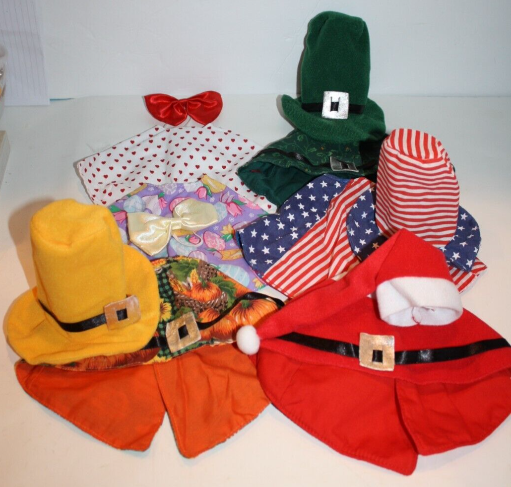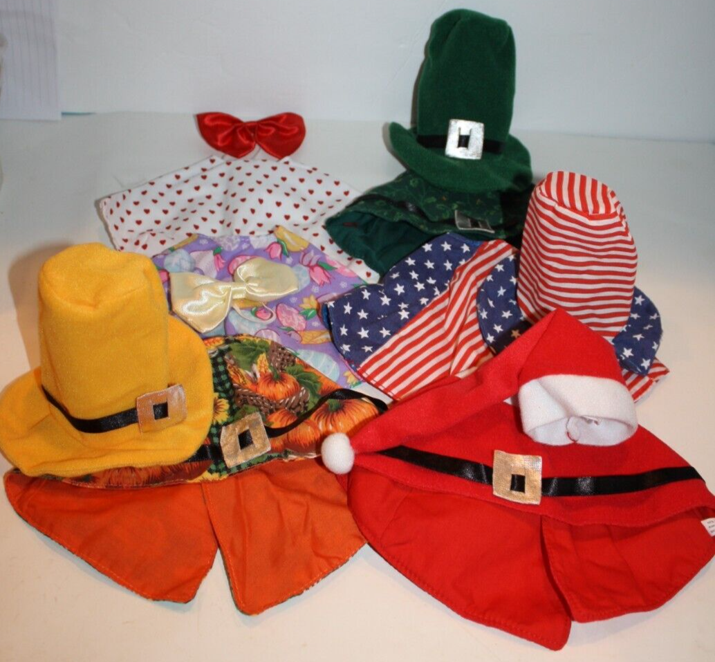 Lot Small Doll Stuffed Animal Bear Cloaks / Capes Hats Bows 6 Holidays Clothes