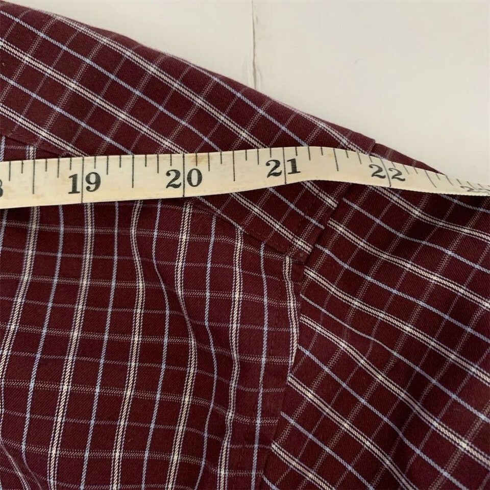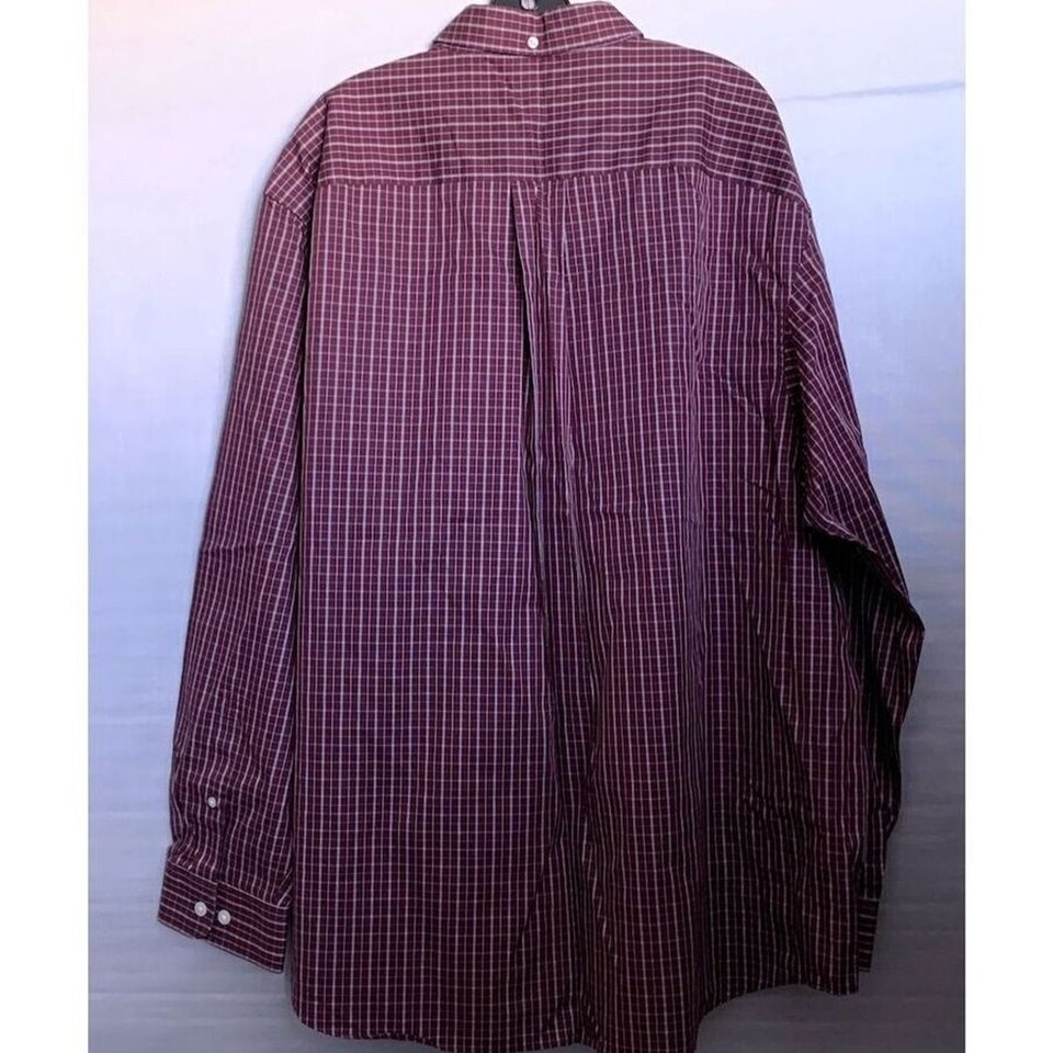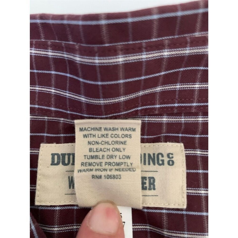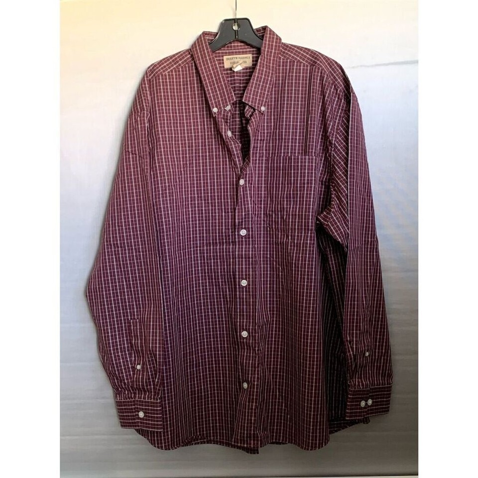 Keywords: Duluth Trading Co, 2XL, red button-up, long sleeve, men's casual shirt, wrinkle-resistant, cotton shirt, button-down collar.