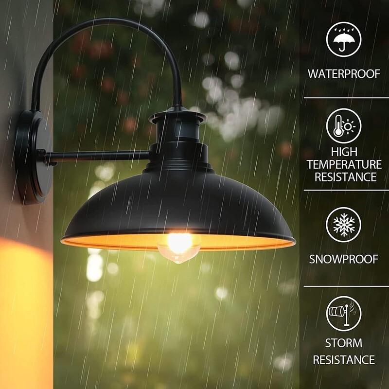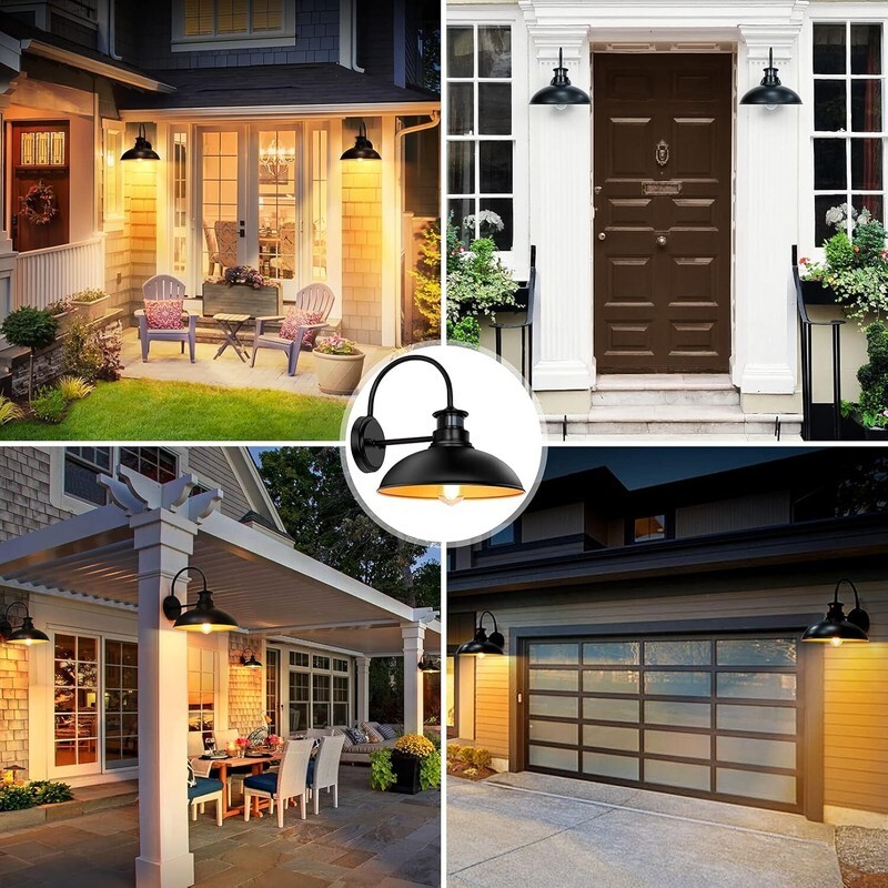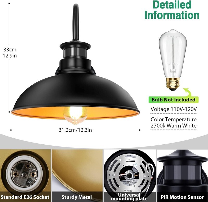 2-Pack Motion Sensor Barn Lights, 12.9" Black Gooseneck Outdoor Wall Sconces