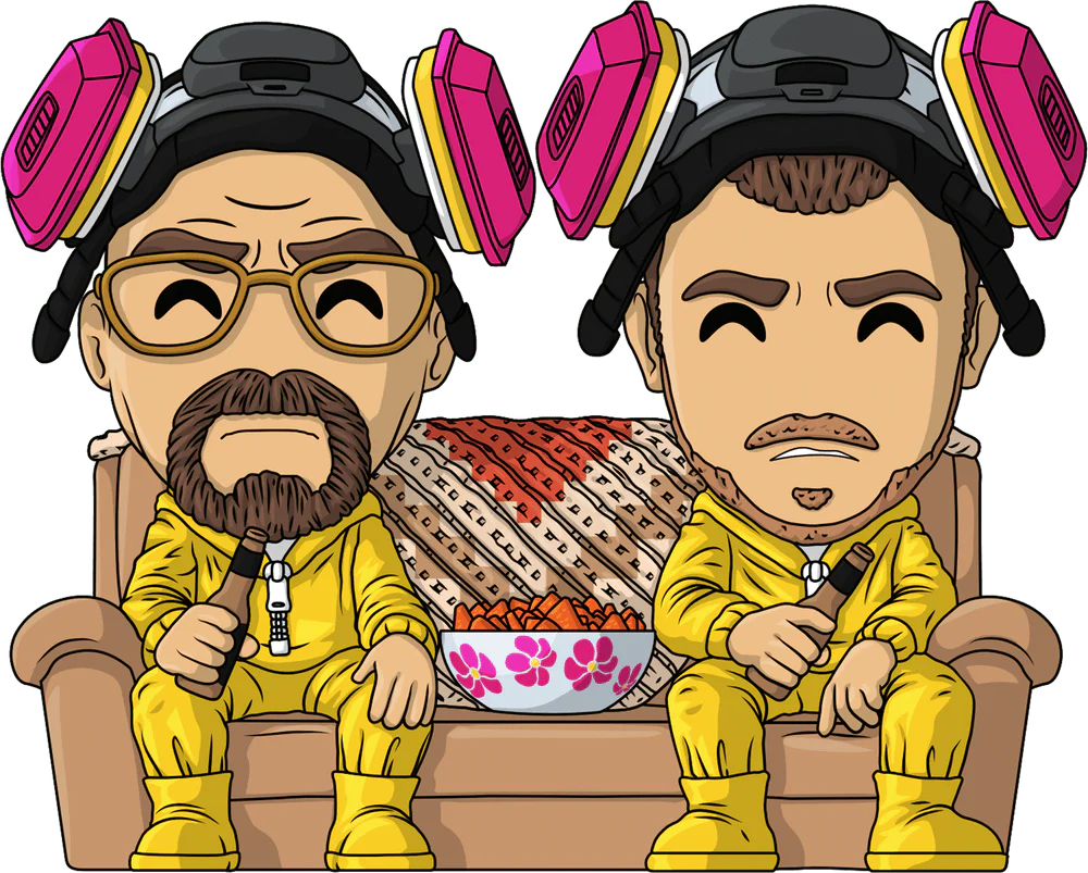 Walt and Jesse have returned to Youtooz to ?fumigate? the building! Sitting at 4.4 inches tall on a brown couch and enjoying a well deserved beer after a hard day's work, a bowl of orange chips sits between them and is backed by the colourful throw rug. Wearing full length bright yellow fumigation jumpsuits from their wrists down to their toes, they?ve pulled their visored pink yellow and black masks from their faces revealing stern, exhausted looks. The exterior of their packaging sees an empty couch sitting in a dark room with beers and chips sitting on a table to its front. While the interior consists of the large green and yellow stripes of a fumigation tent, this then continues onto the protective sleeve that keeps them safely tucked inside. This collectible ships in a matte, embossed, protective outer sleeve and a custom sized plastic protector for maximum protection during shipping.
