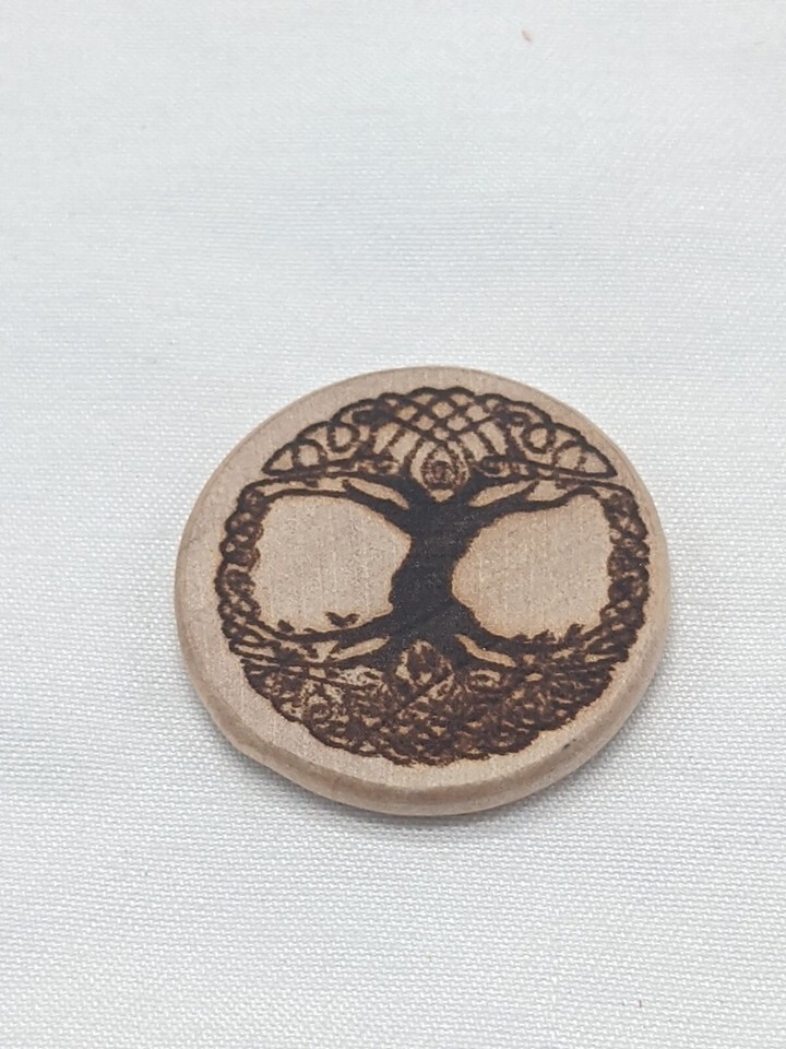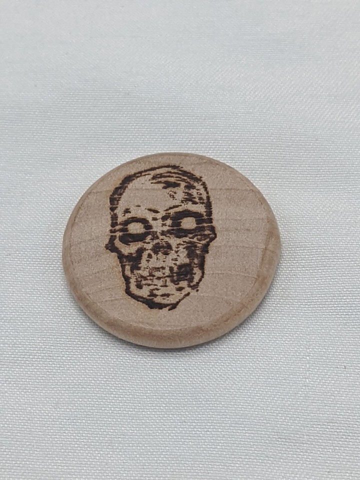 Set Of (3) Custom Wooden RPG Coin Tokens Luck Roll Again Skull Dragon Tree