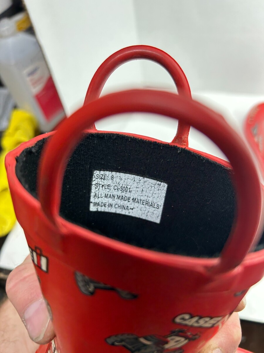 CARS / CASE Tractor Toddler Boys 8 Rubber Rain Boots, Red - Cartoon Tractor CARS