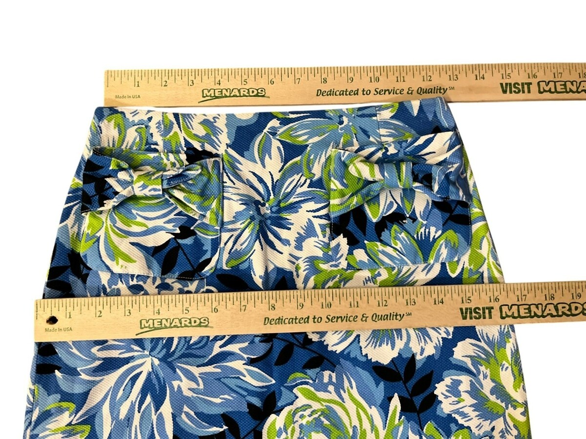 Grace Elements Skirt 2P Petite Blue Green Floral Cotton Blend Bow Pockets Used