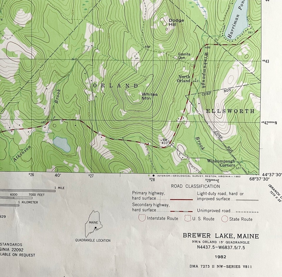 Map Brewer Lake Maine USGS 1982 Topographic and similar items