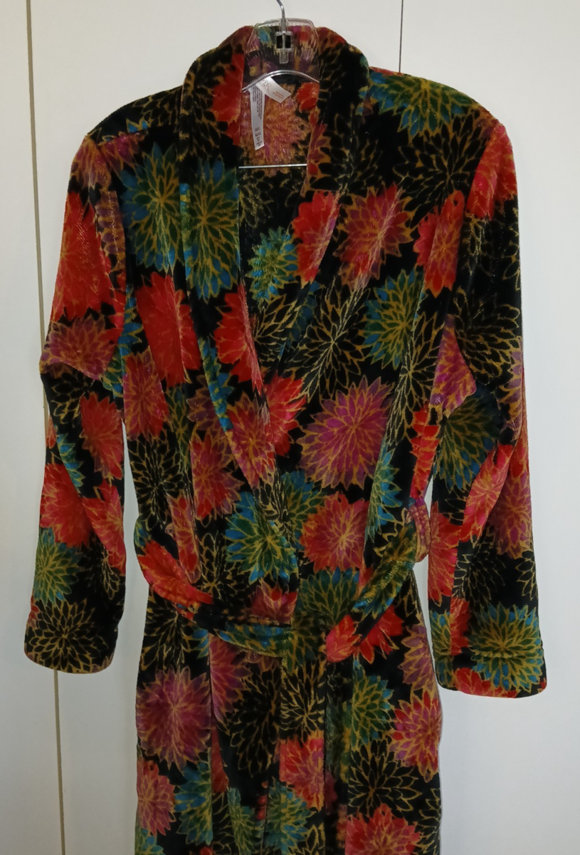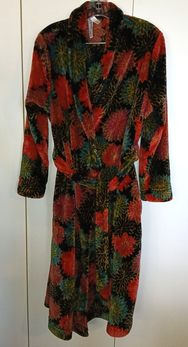 GILLIGAN & O'MALLEY LADIES LS HEAVY COLORFUL FLEECE ROBE W/TIE BELT-M/L-WORN 1
